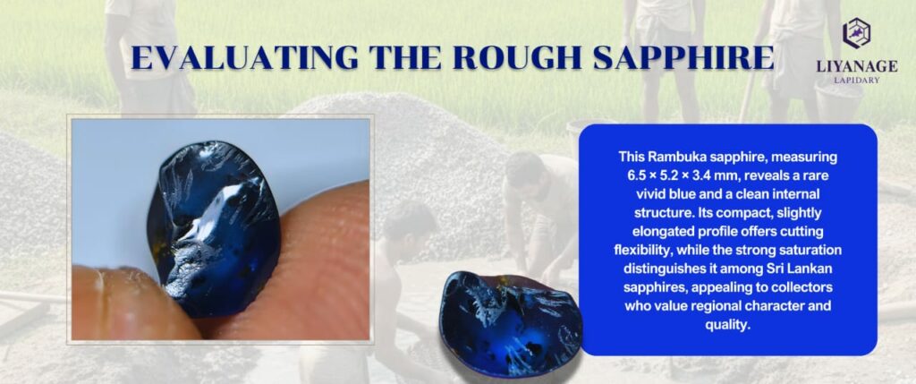 The most striking feature was the natural vivid blue hue. Color remains the most important factor in sapphire evaluation, and stones from Rambuka often show softer or mixed tones. In this particular piece, however, the saturation appeared unusually strong for the area.